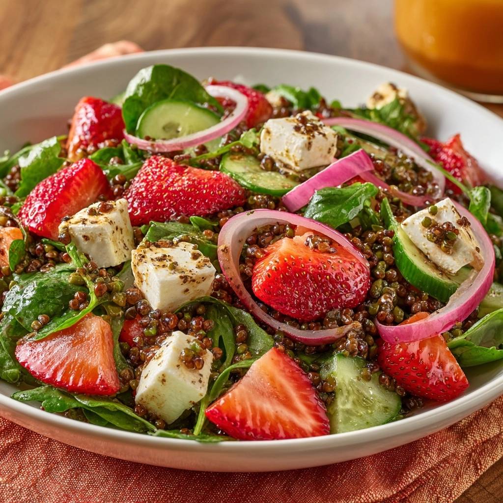 Stell dir vor, du nimmst die erste Gabel dieses Erdbeer-Feta-Linsen-Salats. Die süße Erdbeere explodiert im Mund, knackige Linsen knacken dazu, und cremiger Feta schmilzt weich obendrauf. Der Duft von frischem Spinat und Balsamico hängt in der Luft, purer Sommer auf dem Teller.