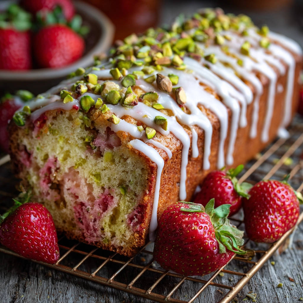 Dieser Erdbeer-Pistazien-Kuchen ist nicht nur optisch ein Hingucker, sondern überzeugt auch geschmacklich auf ganzer Linie. Die Kombination aus fruchtigen Erdbeeren, aromatischen Pistazien und einem feuchten, zitronig angehauchten Teig ist einfach unwiderstehlich. Dazu ein einfacher, aber eleganter Zuckerguss und ein paar extra Pistazien als Krönung – perfekt für Kaffee und Kuchen!