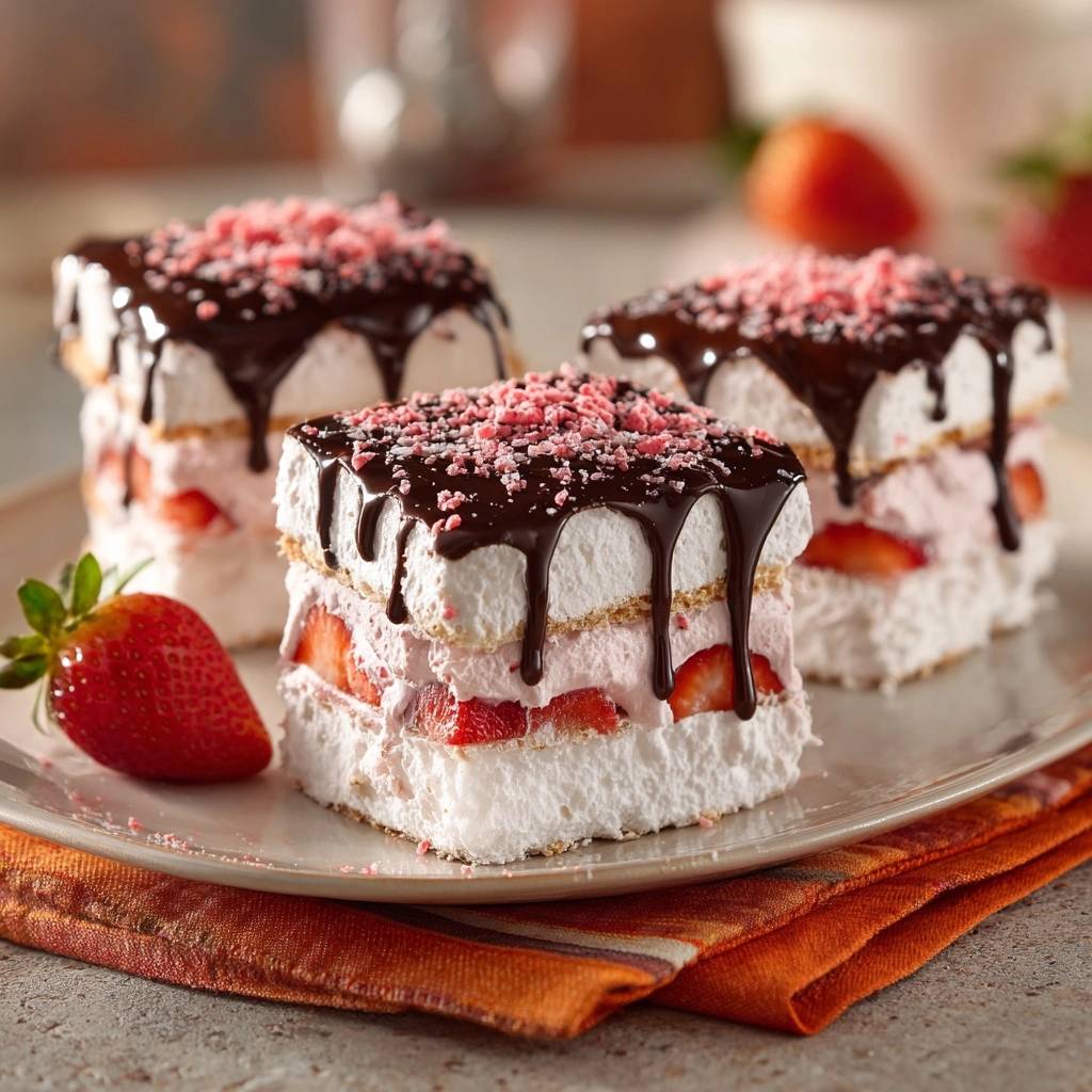 Serviere die Schnitten direkt aus dem Kühlschrank. Die Kombination aus der kalten, cremigen Füllung und dem knackigen Boden ist an warmen Tagen unschlagbar.