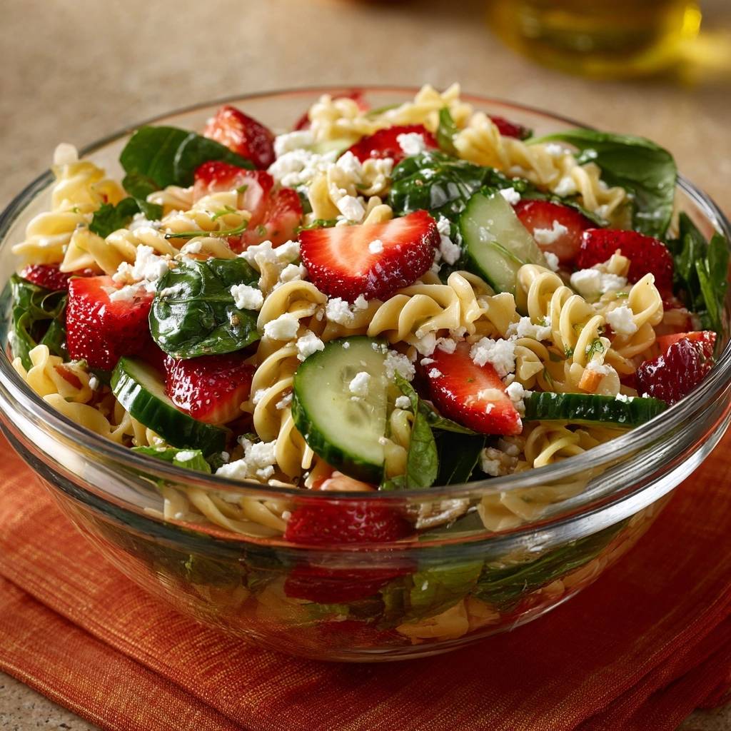 Erdbeer-Spinat-Pasta-Salat mit Gurke & Feta