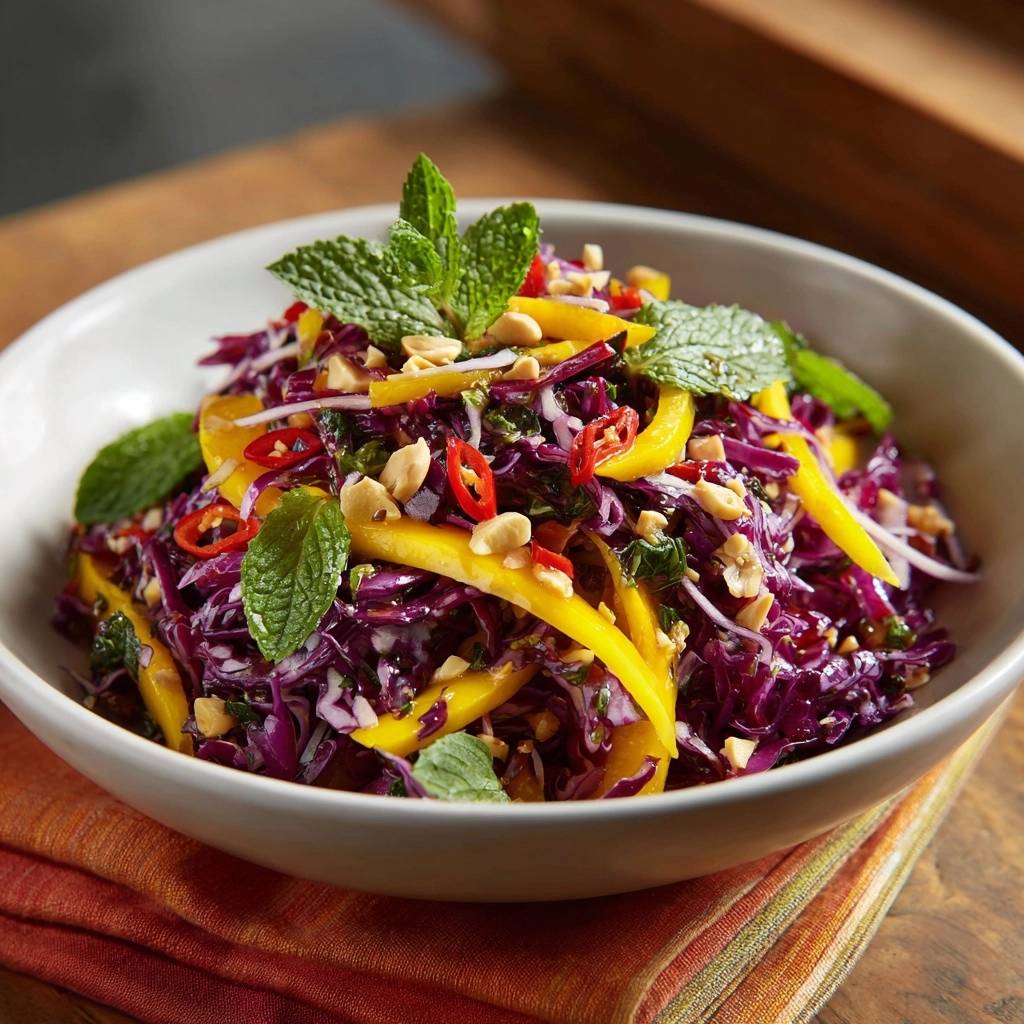 Stell dir vor, du beißt in diesen Salat rein: Der Rotkohl knirscht so herrlich knackig, die Mango explodiert saftig süß, und ein Hauch Chili bringt Feuer ins Spiel. Ich hab das Gericht letztens für Freunde gemacht, und alle haben geschaufelt, als gäb’s kein Morgen. Der Duft von Limette und Minze hängt noch in der Küche.