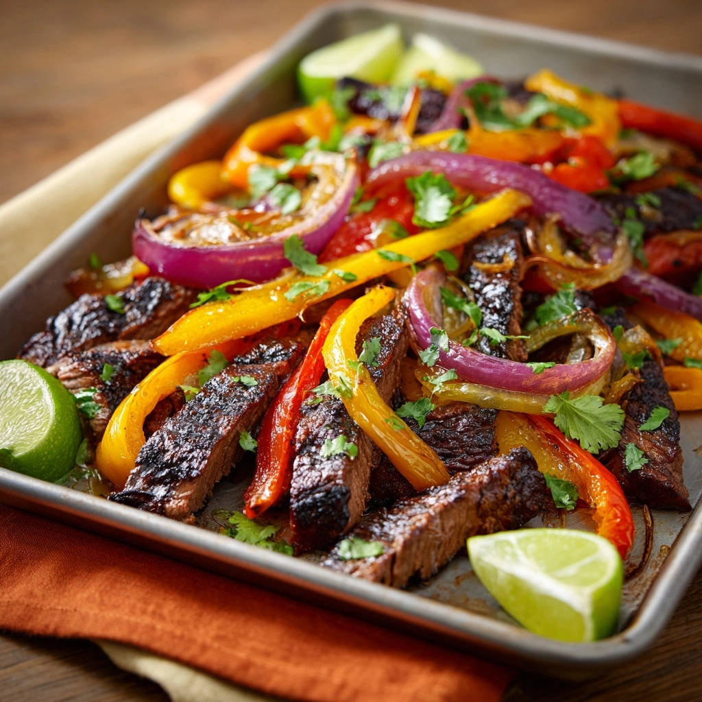 Vergessen Sie mühsames Braten in mehreren Pfannen – hier kommt alles auf ein Blech und wird zu einem blitzschnellen, unglaublich leckeren Abendessen, das Vertrauen in Ihre Kochkünste schafft und Sie zum Fajita-Meister macht.