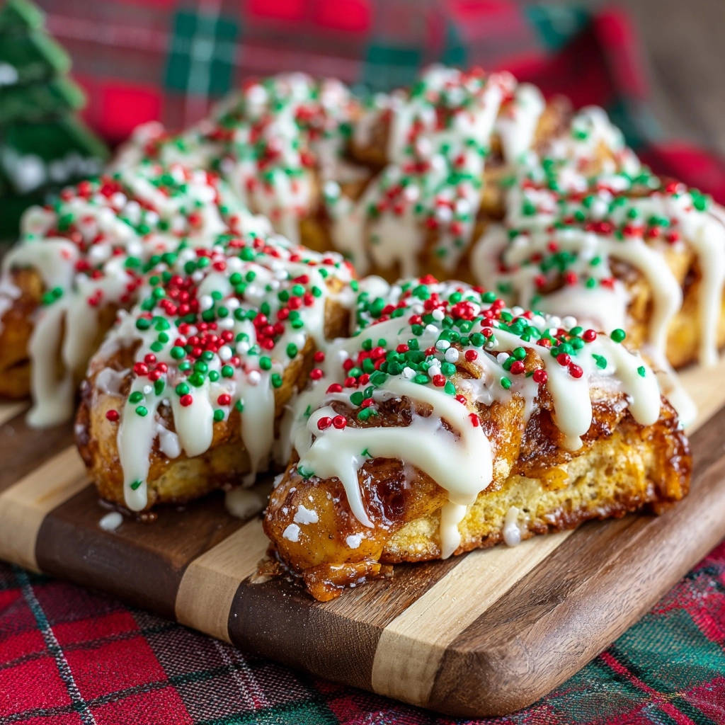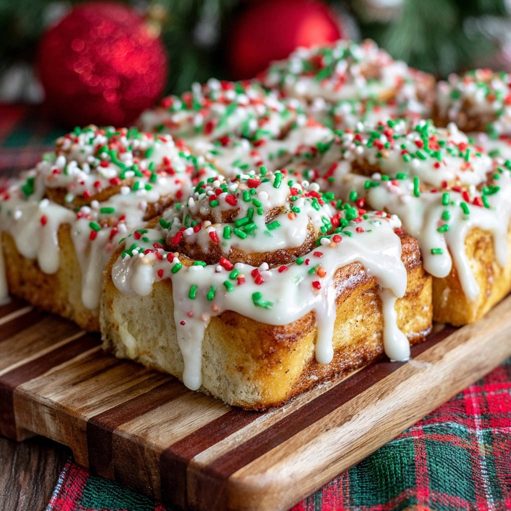 Bunte Zuckerstreusel in Rot, Grün und Weiß sind nicht nur eine optische Freude, sondern verleihen den Festliche Zimtschnecken-Blüten ihren unwiderstehlichen, weihnachtlichen Charme.