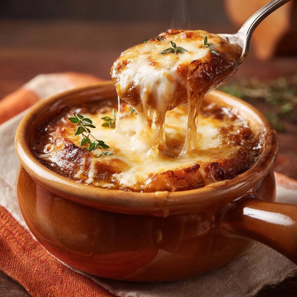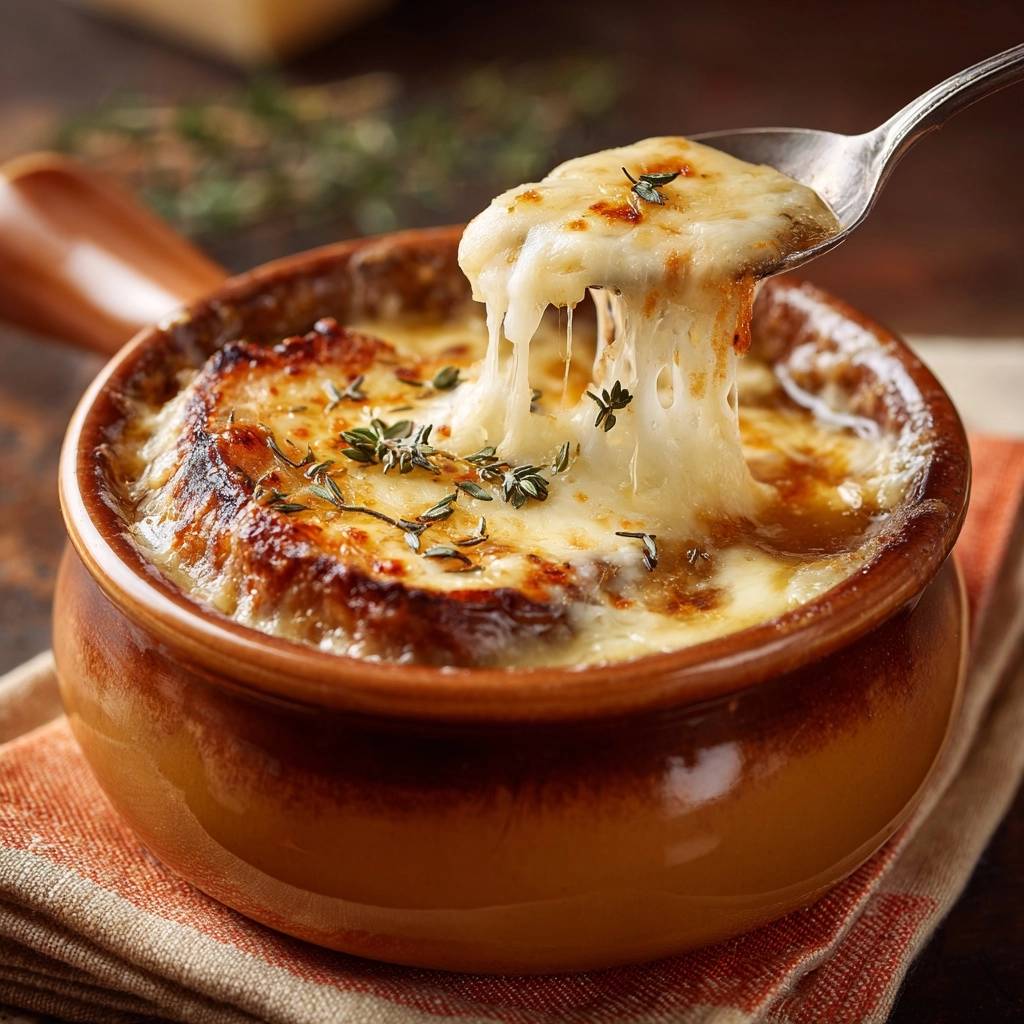 Stell dir vor, du öffnest den Ofen und dieser Duft strömt heraus: süß karamellisierte Zwiebeln, die mit cremiger Brühe verschmelzen und obenauf eine goldene Käsekruste blubbert. Der erste Löffel zieht dich rein, die Zwiebeln schmelzen auf der Zunge, intensiv und weich, gar nicht fade wie in manchen Versionen. Ich hab das Gericht hundertmal gekocht und immer wieder verfeinert.
