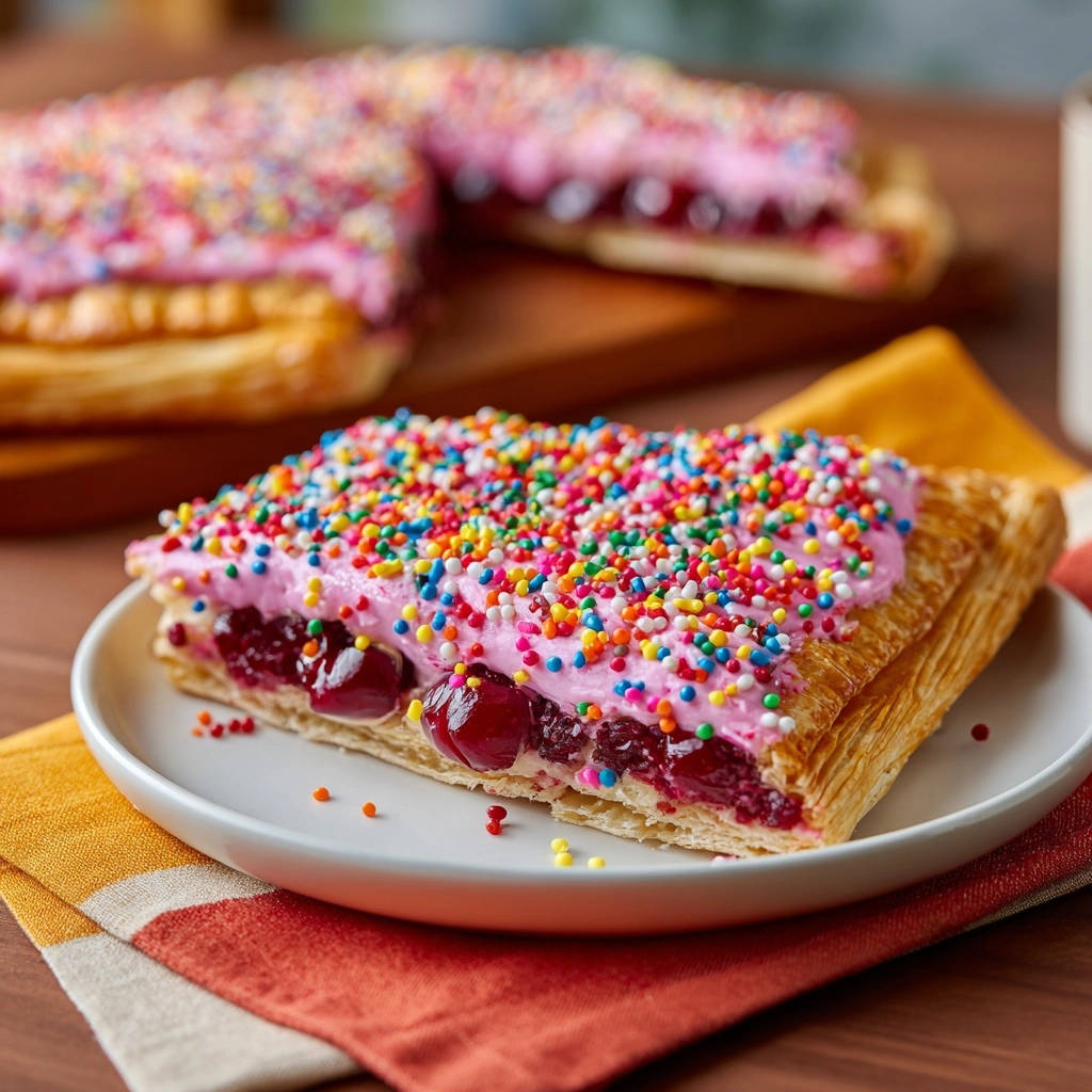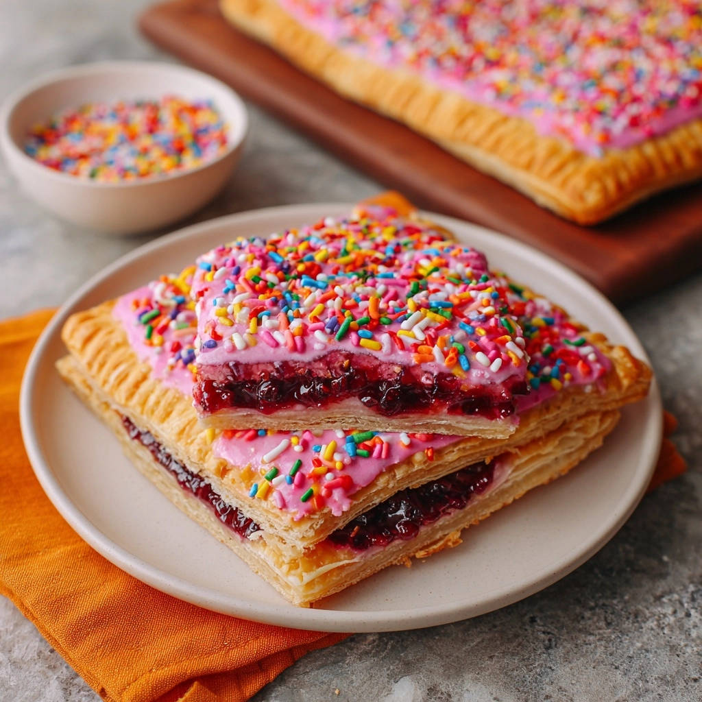 - Der bunte Abschluss: Vermischt den Puderzucker mit Milch oder pflanzlichem Drink, bis ein dickflüssiger, aber streichfähiger Zuckerguss entsteht. Falls gewünscht, gebt einen Hauch rote Lebensmittelfarbe dazu, um den typischen pinken Ton zu erhalten. Bestreicht die abgekühlten Gebäcktaschen großzügig mit dem Zuckerguss und streut sofort die bunten Zuckerstreusel darüber, bevor der Guss antrocknet. Sofort genießen oder luftdicht verpackt aufbewahren.