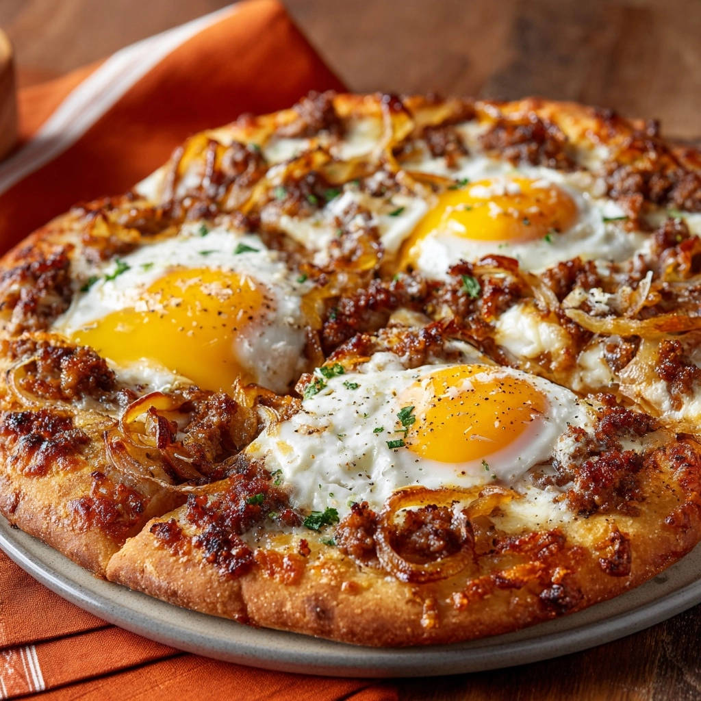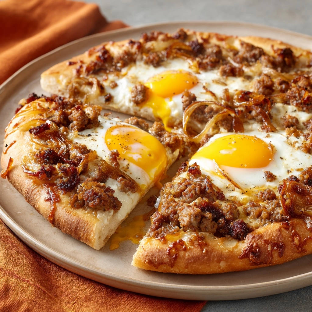 Frühstückspizza mit Wurst und karamellisierten Zwiebeln: Das Geheimnis des perfekt flüssigen Eigelbs!