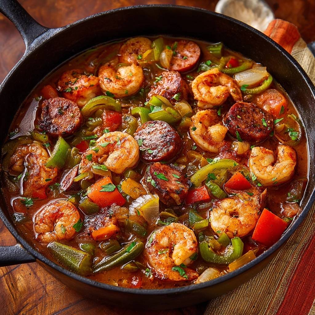 Der Löffel taucht ein in die dampfende Schüssel, und schon steigt dieser intensive Duft auf – geräuchertes Paprika, scharfer Cayenne und frisches Gemüse. Der erste Bissen explodiert im Mund: saftige Garnelen, knusprige Okra ohne einen Hauch Schleim und eine dickflüssige Soße, die perfekt haftet.