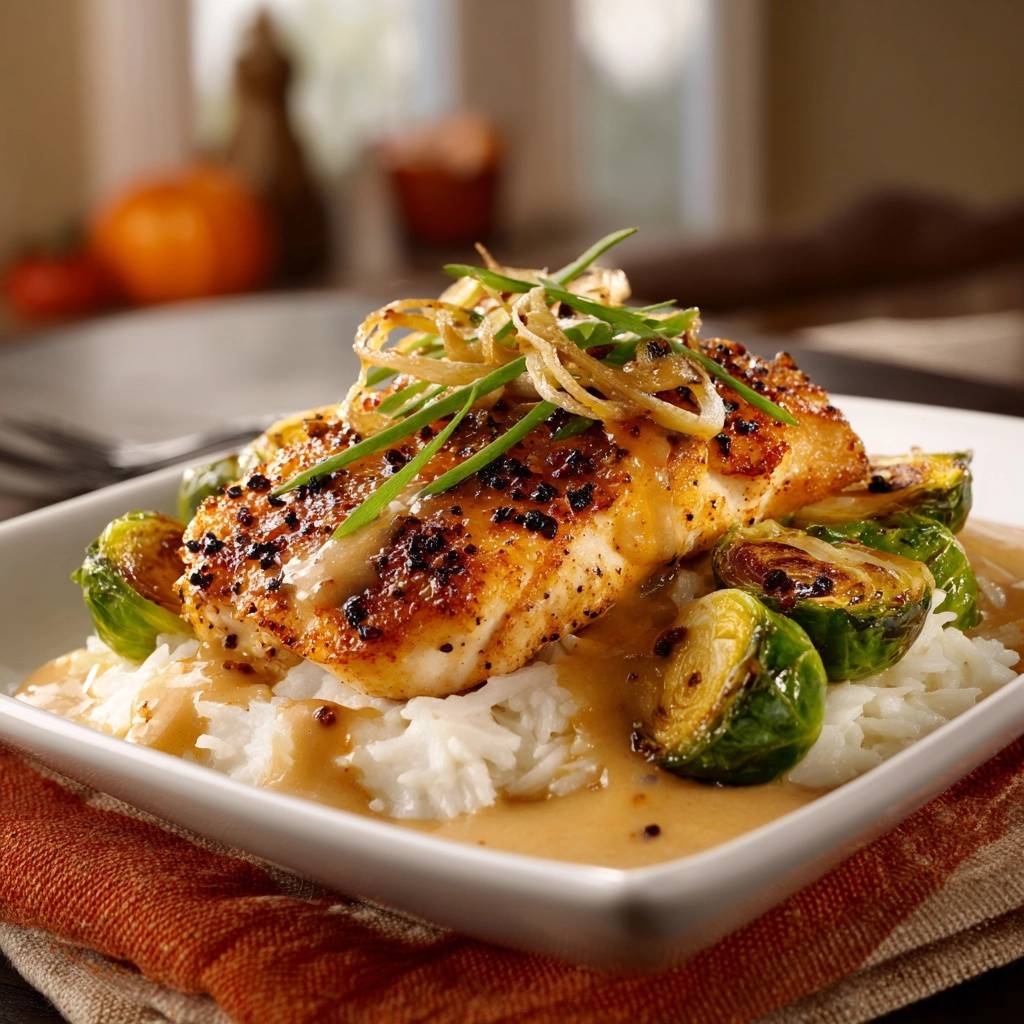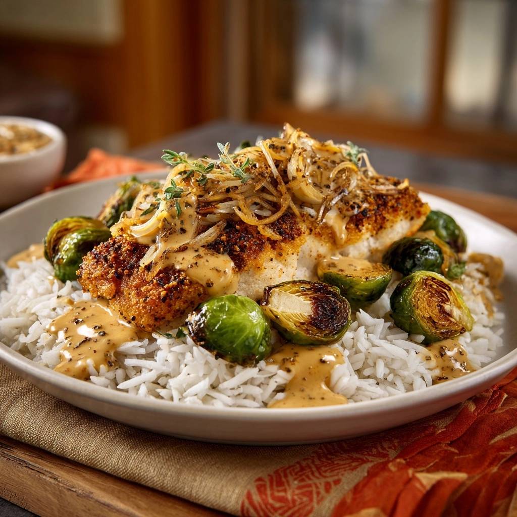 Gebratenes Fischfilet auf Reis mit Rosenkohl: Saftig & Zart