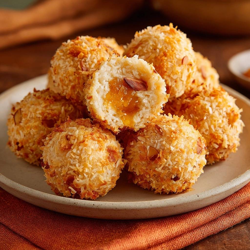 Stell dir vor, du beißt in so ein goldbraunes Kokosbällchen, und die saftige Aprikosenfüllung mit knackigen Mandeln explodiert im Mund. Der Kokosteig umhüllt alles perfekt, ohne auch nur einen Krümel zu verlieren. Der Duft von Vanille und Kokos hängt in der Küche, und du fragst dich, warum du das nicht früher gemacht hast.