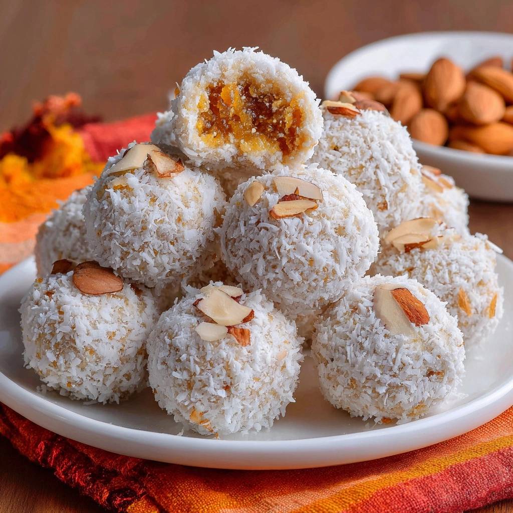 - 250 g Kokosraspeln (geteilt: 200 g für Hülle, 50 g zum Wälzen)