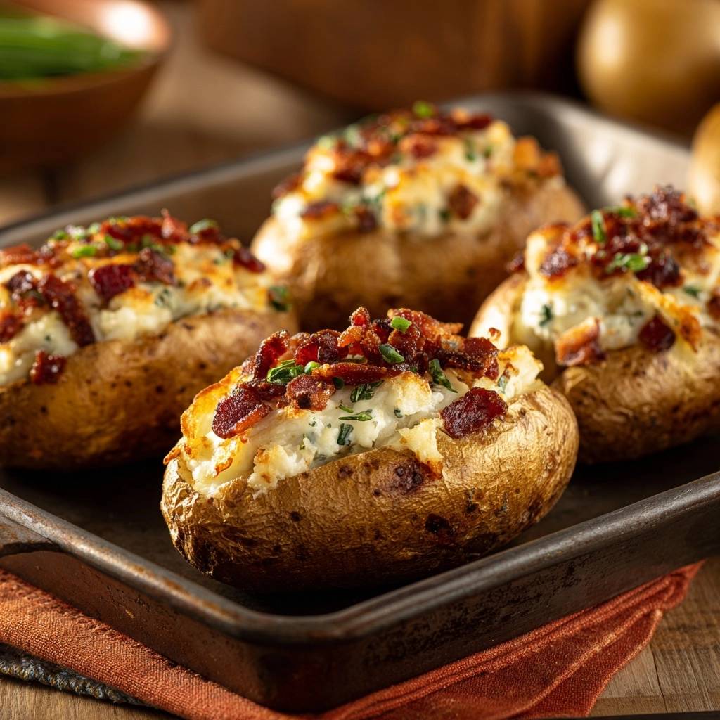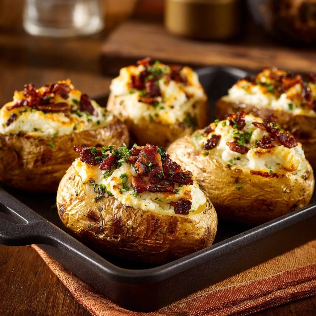 Gefüllte Ofenkartoffeln mit Bacon, Käse und Kräutern