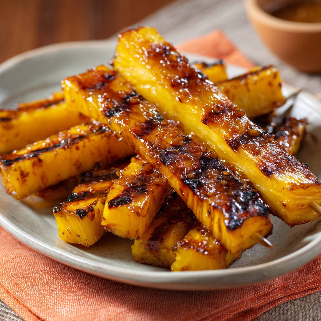 Gegrillte Ananas-Spieße sind unglaublich vielseitig. Sie können sowohl als süße Beilage als auch als Dessert serviert werden.