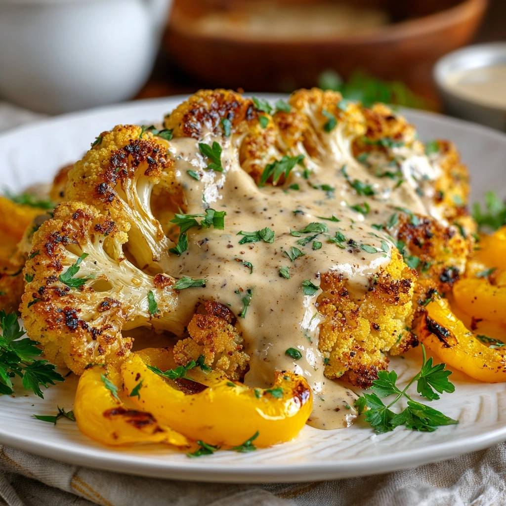 Gerösteter Blumenkohl-Steak mit cremiger Tahini-Sauce