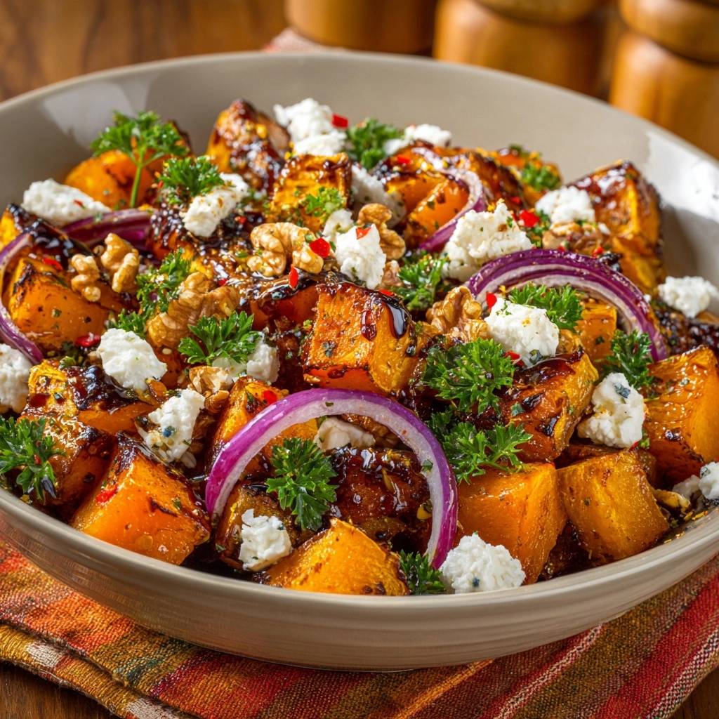 Gerösteter Kürbissalat mit Feta und Walnüssen