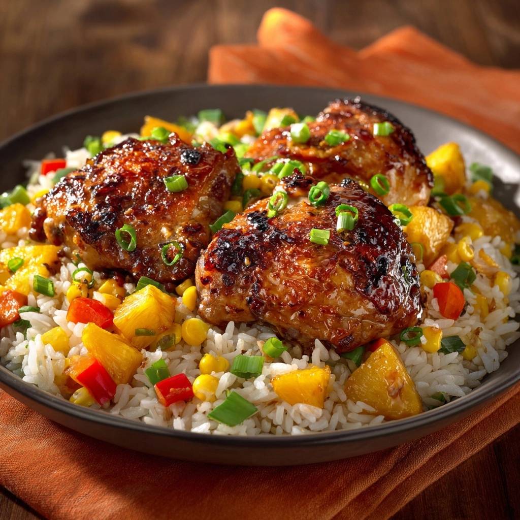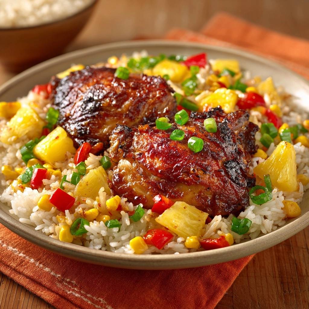 Glasierte Hähnchenschenkel mit Ananas-Reis
