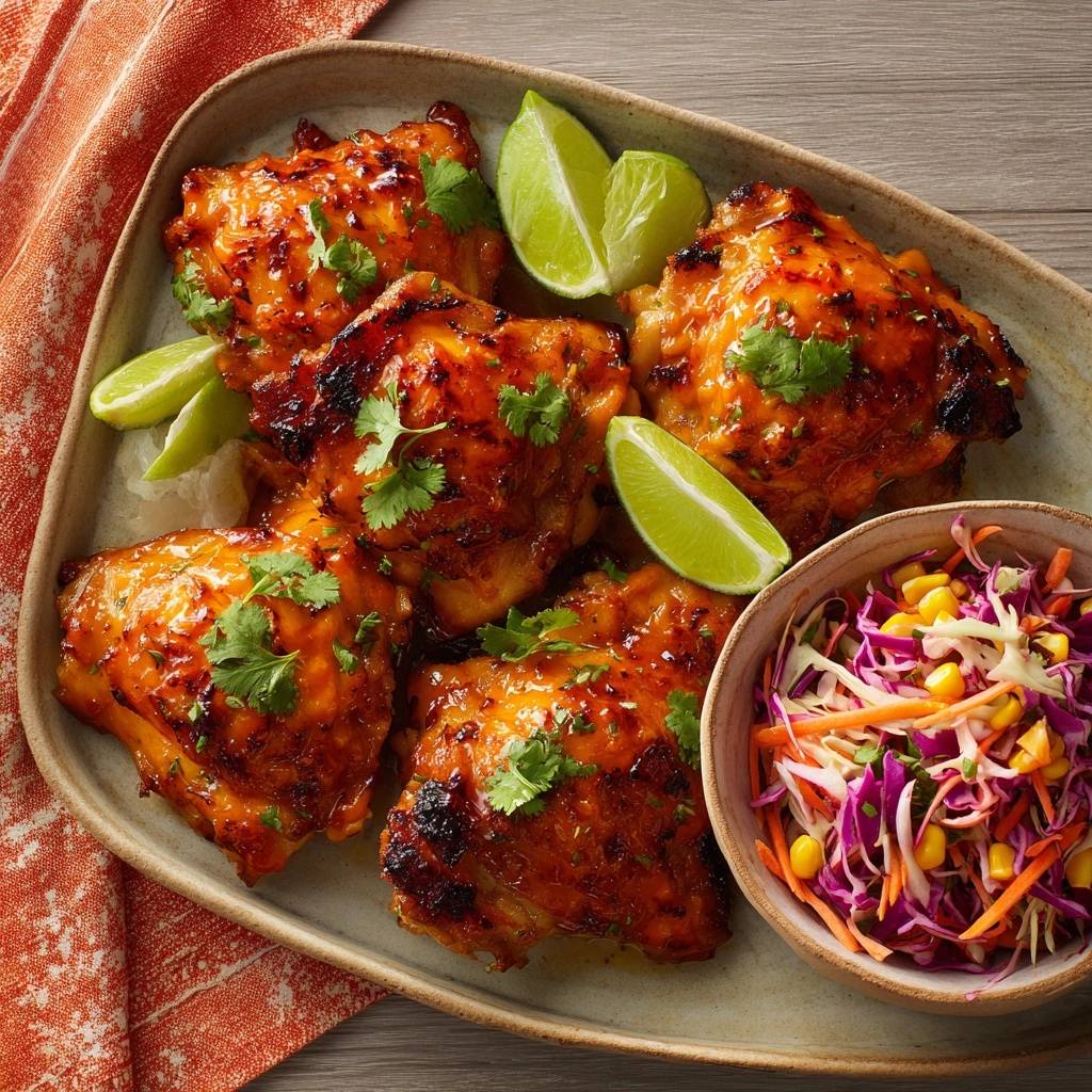 - Anrichten: Servieren Sie die glasierten Schenkel auf einer Platte. Garnieren Sie großzügig mit frischem Koriander und legen Sie die restlichen Limettenspalten dazu. Der frische Limettensaft direkt vor dem Essen intensiviert das Aroma der Glasur.