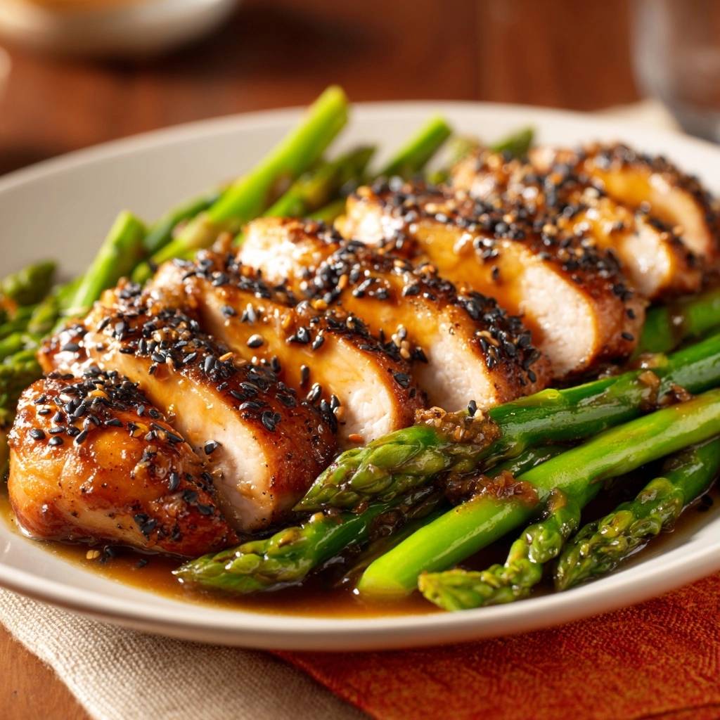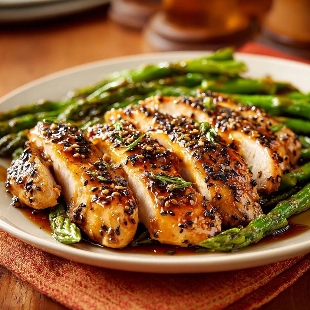 Glasierte Sesam-Hähnchenbrust mit Spargel: Saftig & Schnell