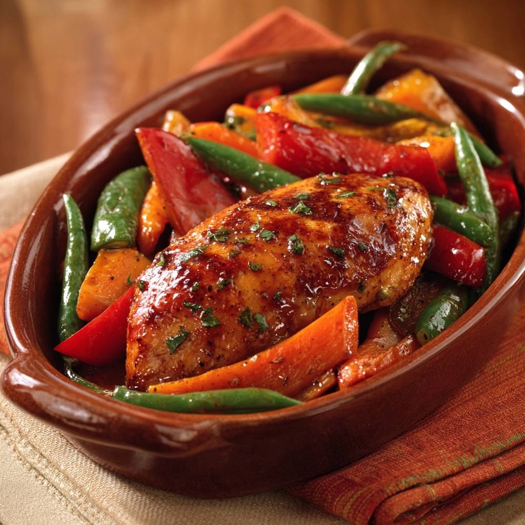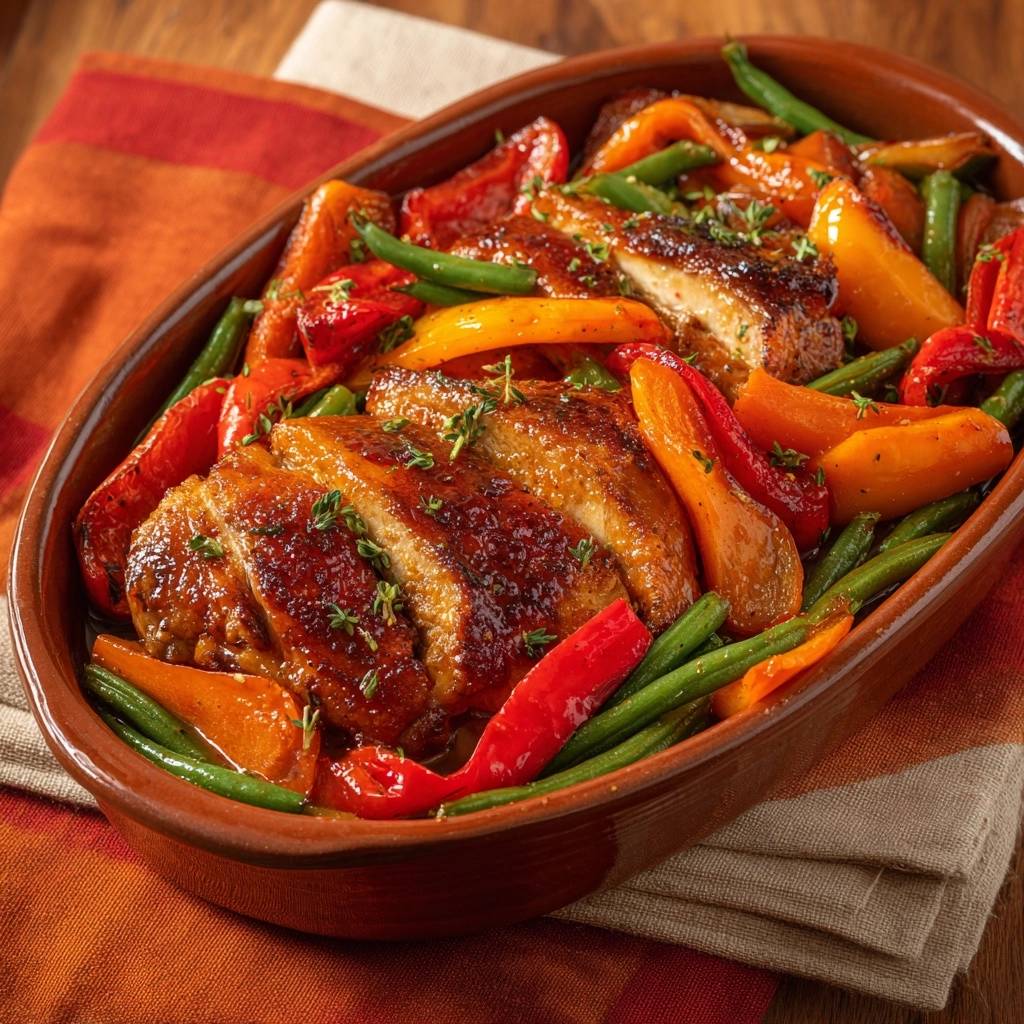Glasiertes Hähnchen mit Paprika, Bohnen & Karotten