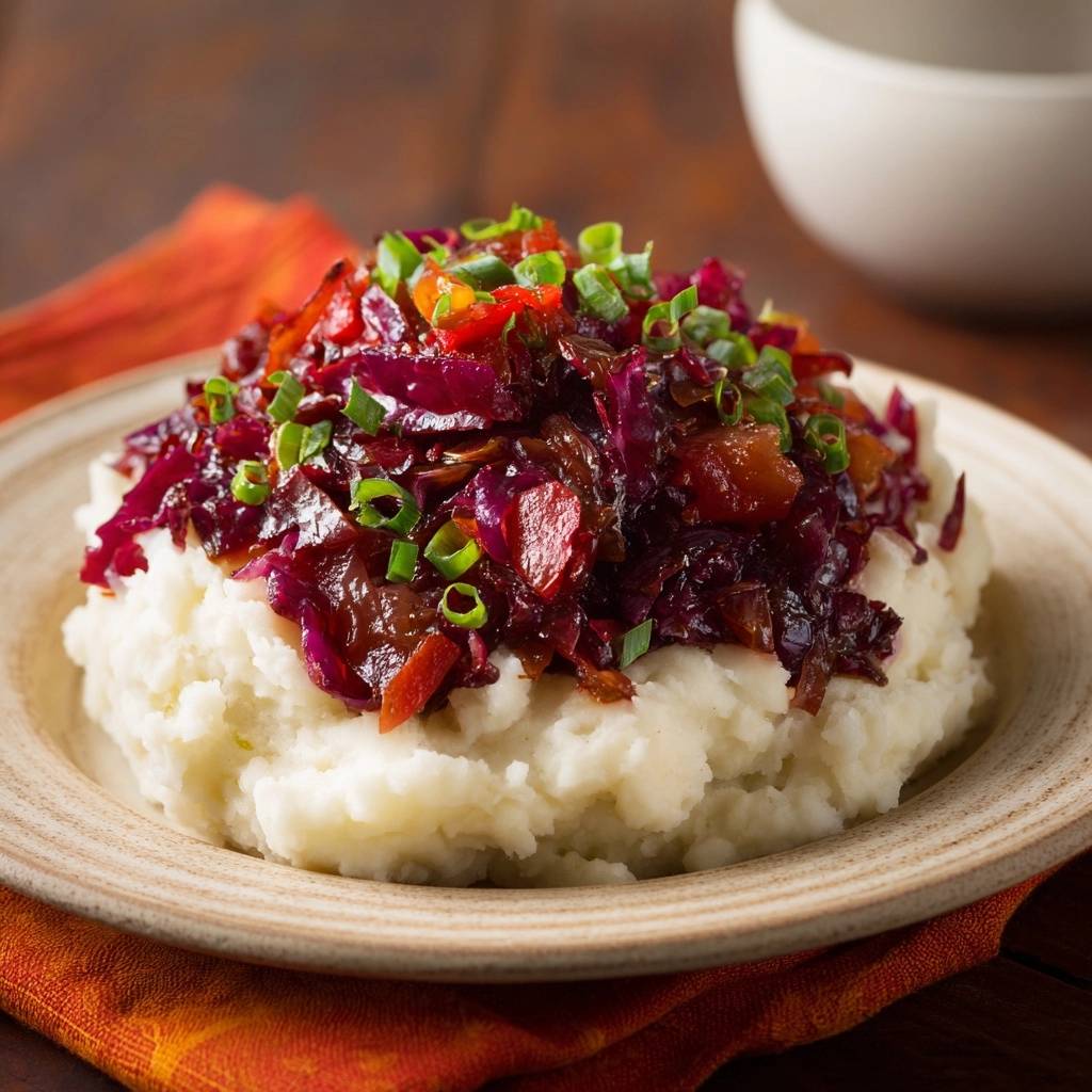 Der erste Bissen haut dich um: knackiger Rotkohl, der glasig glänzt und süß-sauer knistert, thront auf einem fluffigen Kartoffelpüree, das wie eine cremige Wolke schmeckt. Letzte Woche hab ich das in der Küche gezaubert, weil ich diesen typischen matschigen Rotkohl so satt habe. Du kennst das: Kohl, der zusammenfällt und fade wird. Aber hier wird’s anders.