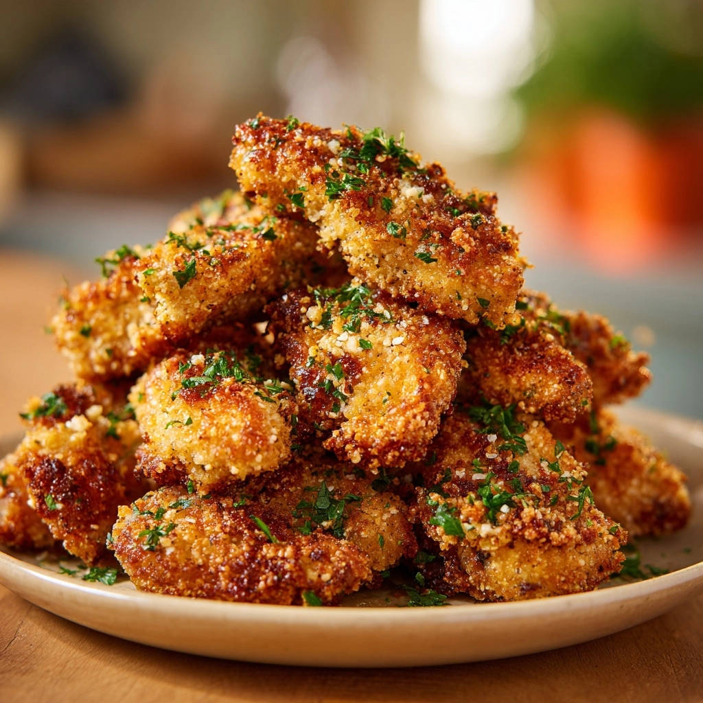 Unsere Panade ist weit mehr als nur eine Hülle; sie ist ein integraler Bestandteil des Geschmacksprofils. Die Kombination aus knusprigem Paniermehl und würzigem Parmesan sorgt für eine unvergleichliche Textur und einen tiefen, umami-reichen Geschmack. Die frische Petersilie bringt nicht nur eine wunderschöne Farbe, sondern auch eine aromatische Kräuternote, die die würzigen Parmesanaromen perfekt ergänzt. Jeder Bissen ist ein Fest für die Sinne, mit einer idealen Balance aus Knusprigkeit und Würze.Backen statt Frittieren: Knusprig, leicht & einfacher