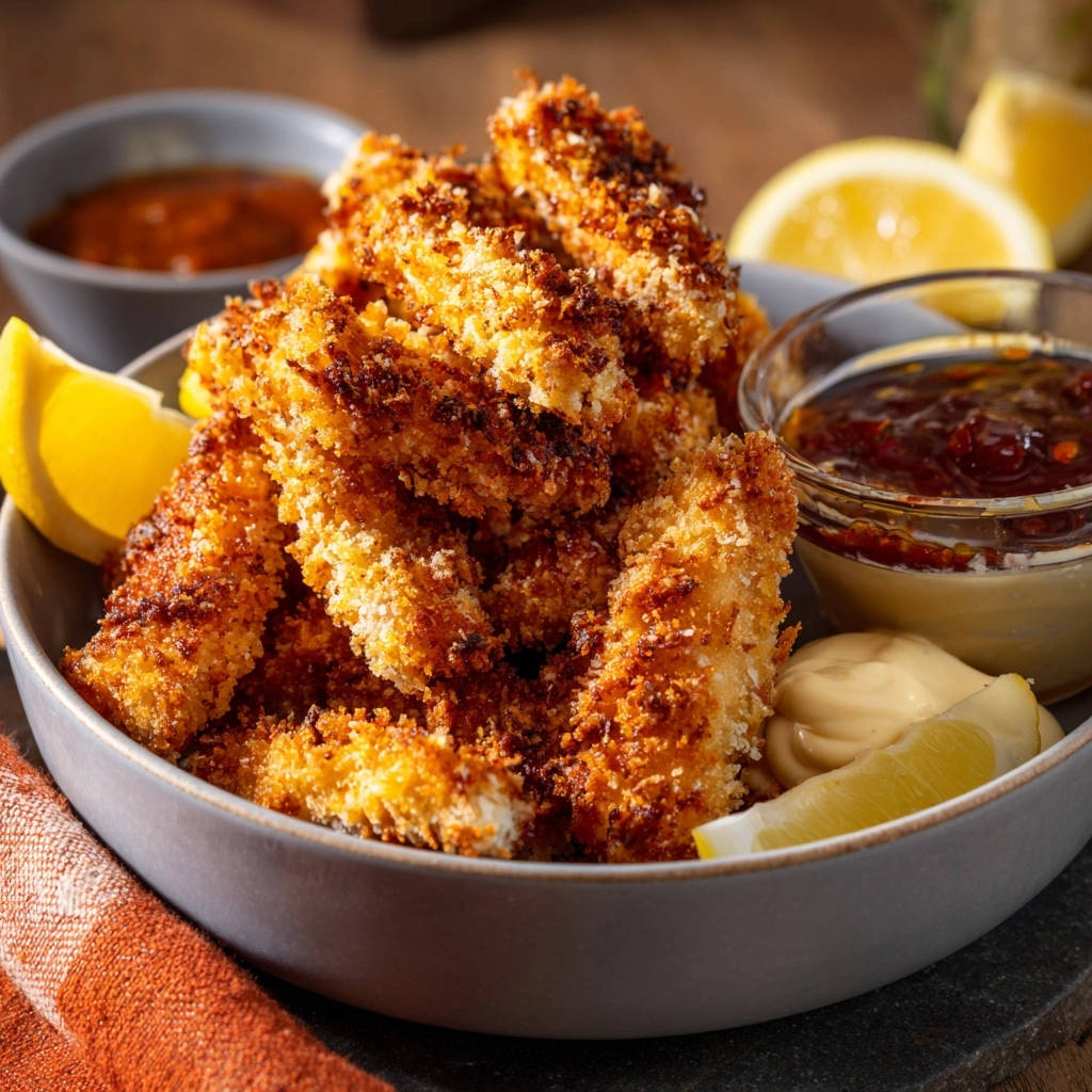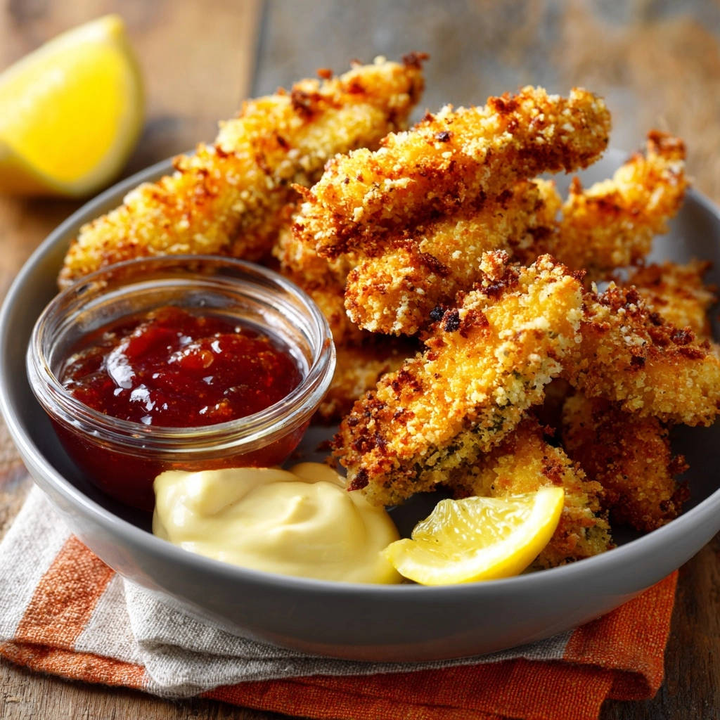 Verabschieden Sie sich endgültig von weichen Panaden und begrüßen Sie perfekt goldbraune, unwiderstehlich knusprige Hähnchen-Strips aus Ihrem eigenen Ofen. Ich bin überzeugt, dass dieses Rezept Ihre Art, Hähnchen zuzubereiten, für immer verändern wird – versprochen!