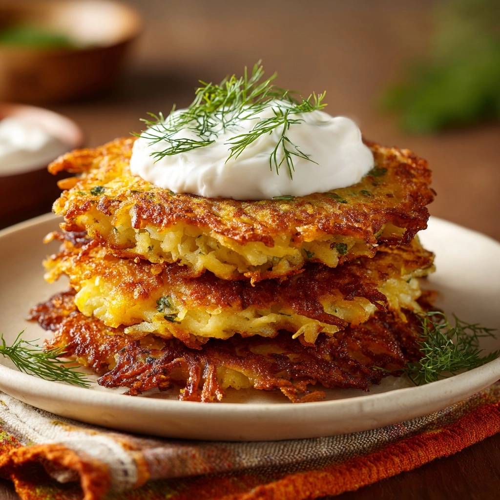 1 kg vorwiegend festkochende Kartoffeln 1 große Zwiebel 2 Eier (Größe M) 3 Esslöffel Speisestärke (unverzichtbar für den Extra-Crunch) 1,5 Teelöffel Salz Frischer Dill (ein halber Bund für den Teig, der Rest zum Garnieren) Schwarzer Pfeffer und eine Prise Muskatnuss Reichlich Butterschmalz oder hoch erhitzbares Pflanzenöl (z.B. Rapsöl) 200 g Schmand oder saure Sahne zum Servieren