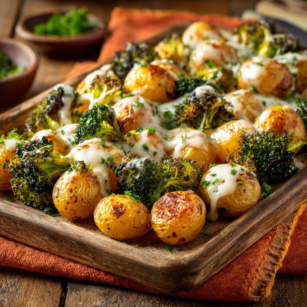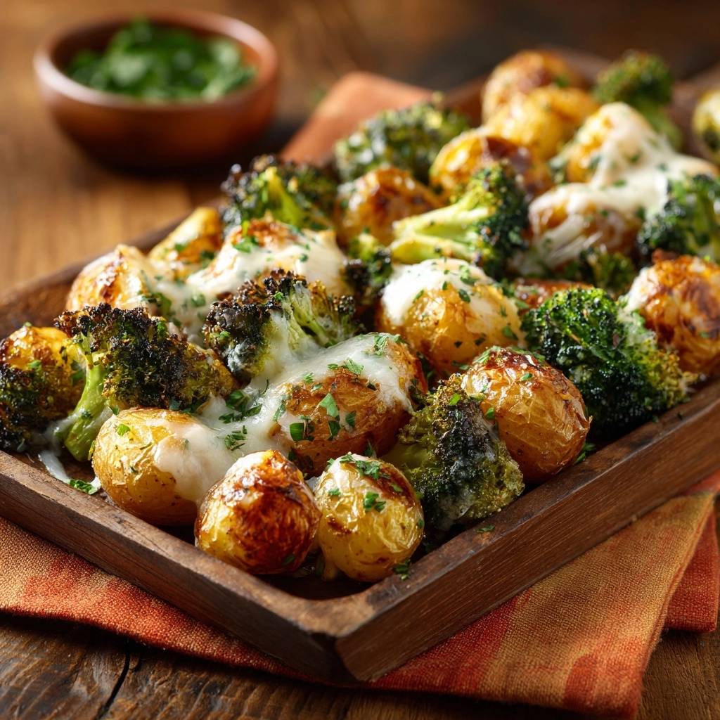 Stell dir vor, du beißt in eine winzige Kartoffel, die außen herrlich kracht und innen butterweich ist. Dazu gesellen sich Brokkoliröschen, die an den Spitzen fast schwarz geröstet sind und dadurch ein nussiges Aroma entwickeln, das du so vielleicht noch nie probiert hast. Gekrönt wird das Ganze von einer Schicht Mozzarella, die sich wie ein weiches Kissen über das Gemüse legt.