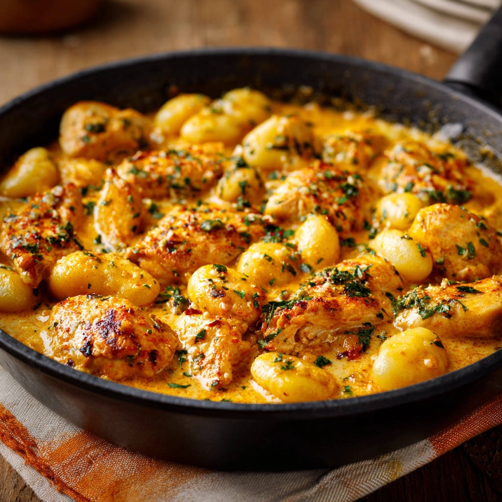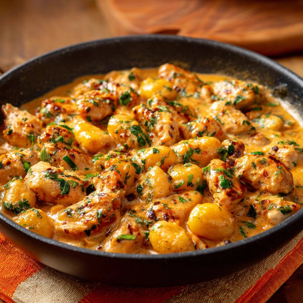 Genieße deine hausgemachte Hähnchen und Gnocchi in cremiger Sauce!
