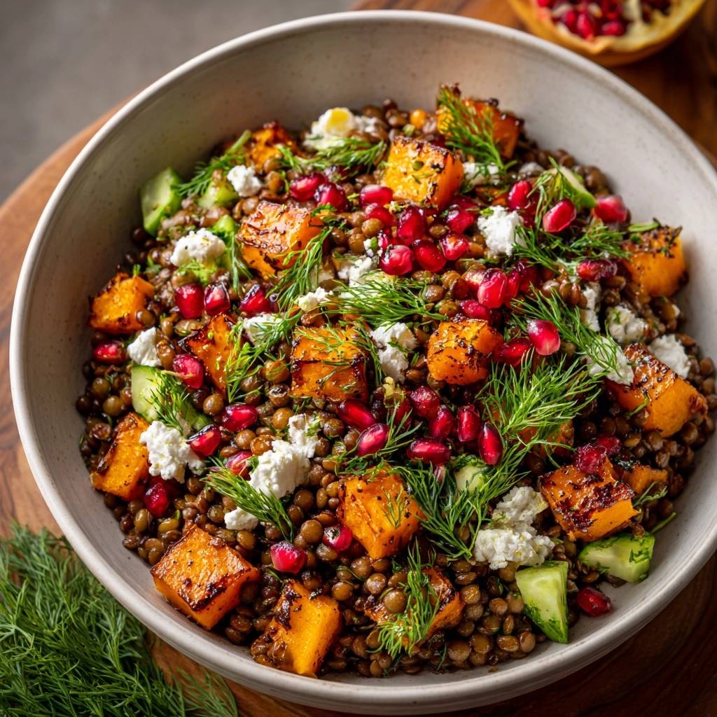 Der erste Bissen explodiert im Mund: cremiger Kürbis, der karamellisiert duftet, knackige Linsen, die nie matschig werden, und der säuerliche Knall der Granatapfelkerne. Dazu zerbröselt Feta, der alles cremig rundet. Ich hab diesen herbstlichen Linsensalat mit Kürbis, Feta und Granatapfel in einer kühlen Herbstwoche entwickelt, als die ersten Kürbisse auf dem Markt leuchteten.