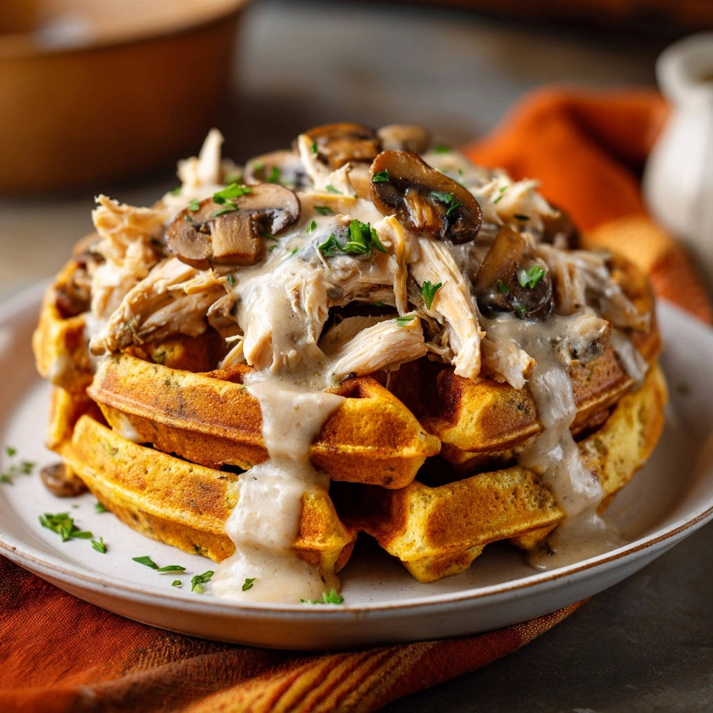 Herzhafte Hähnchen-Pilz-Waffeln: Knusprig bis zum letzten Bissen