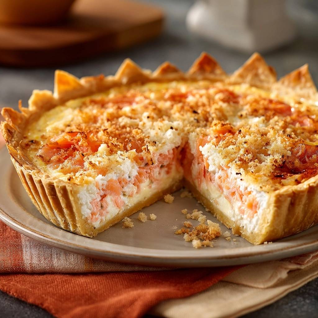 Im Ofen schmilzt die Butter in die Brösel und röstet sie goldbraun. Diese Schicht wirkt wie ein Schutzschild und gibt der Quiche einen unerwarteten Biss, der perfekt mit dem weichen Kern harmoniert.