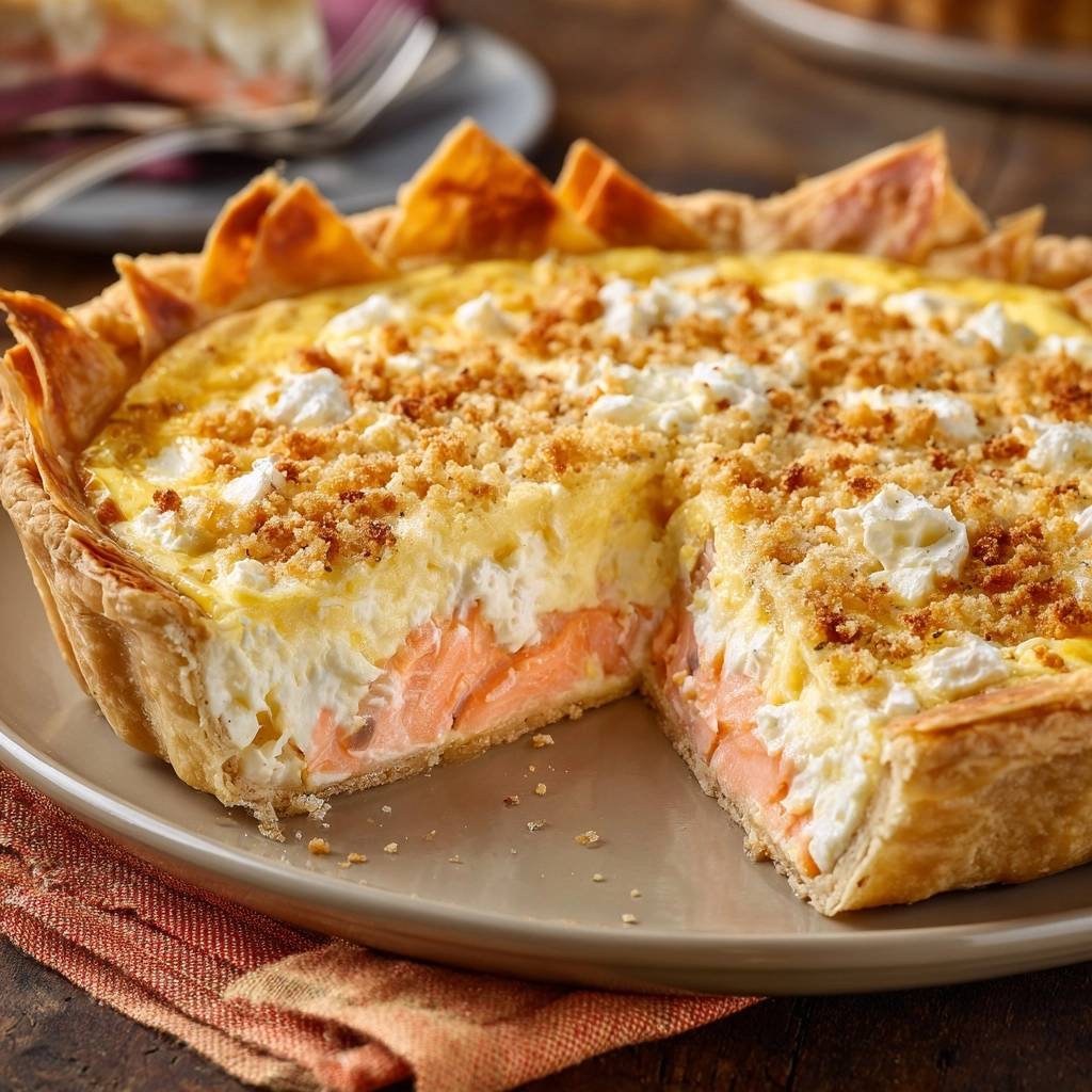 Herzhafte Lachs-Quiche mit Feta (Der Anti-Matsche-Boden)