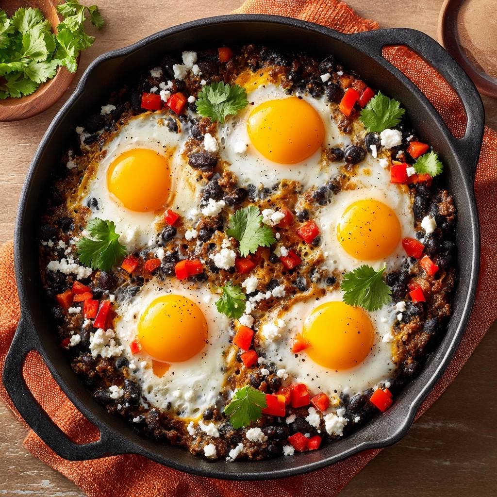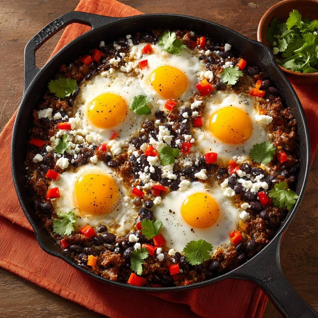 Dieses Gericht ist ein echtes Kraftpaket, das dich dank der Kombination aus schwarzen Bohnen, Rinderhack und Eiern lange satt hält. Die Proteine liefern Energie, während die Paprika für die nötige Frische sorgt.