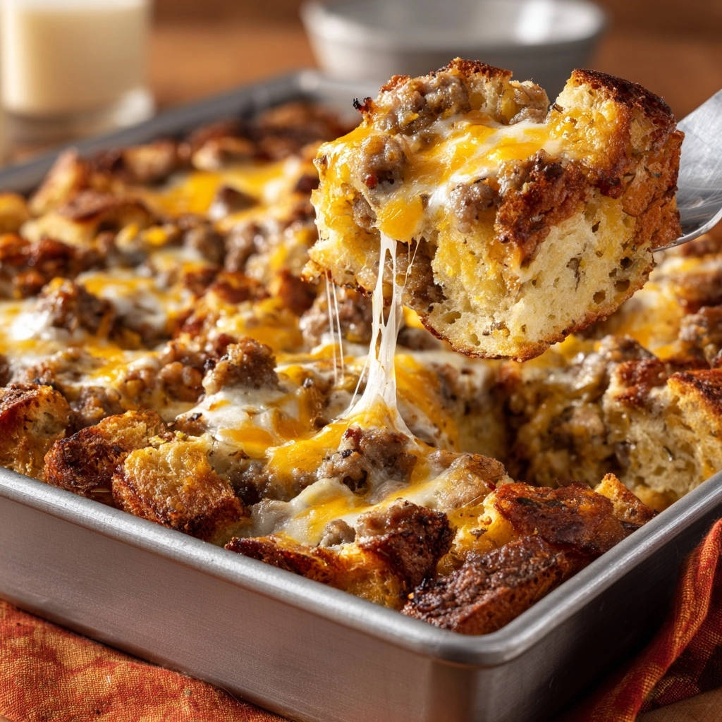 Herzhafter Frühstücks-Brotauflauf mit Wurst und Käse: Nie wieder trocken!