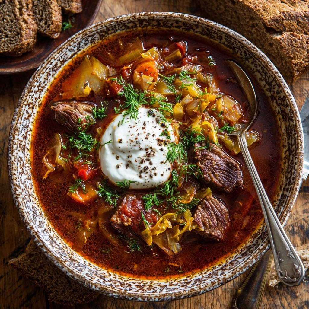 - Servieren Sie den herzhaften Kraut-Fleisch-Eintopf heiß, großzügig garniert mit frischem Dill und einem Klecks Sauerrahm oder Schmand. Dazu passt hervorragend eine Scheibe dunkles, rustikales Brot. Guten Appetit!