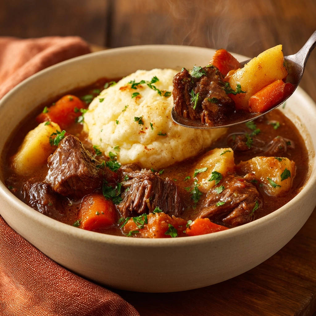 Herzhafter Rindereintopf mit Kartoffelklößen