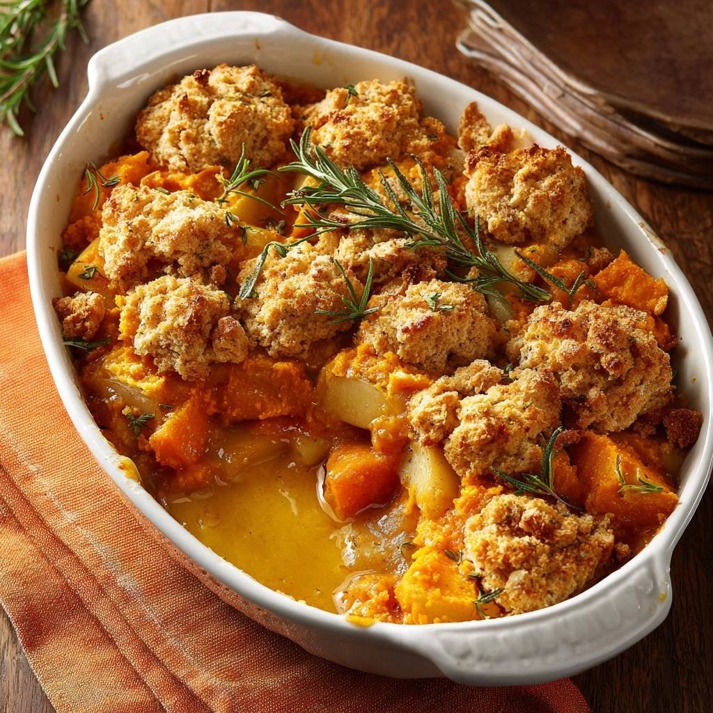 Stell dir vor, du löffelst in eine goldbraune, krustige Schicht aus Käse und Butter, nur um darunter auf butterweiche, süßliche Kartoffeln zu treffen. Der Duft von frischem Rosmarin zieht durch die Küche und das erste Knacken der Streusel macht sofort Lust auf mehr.
