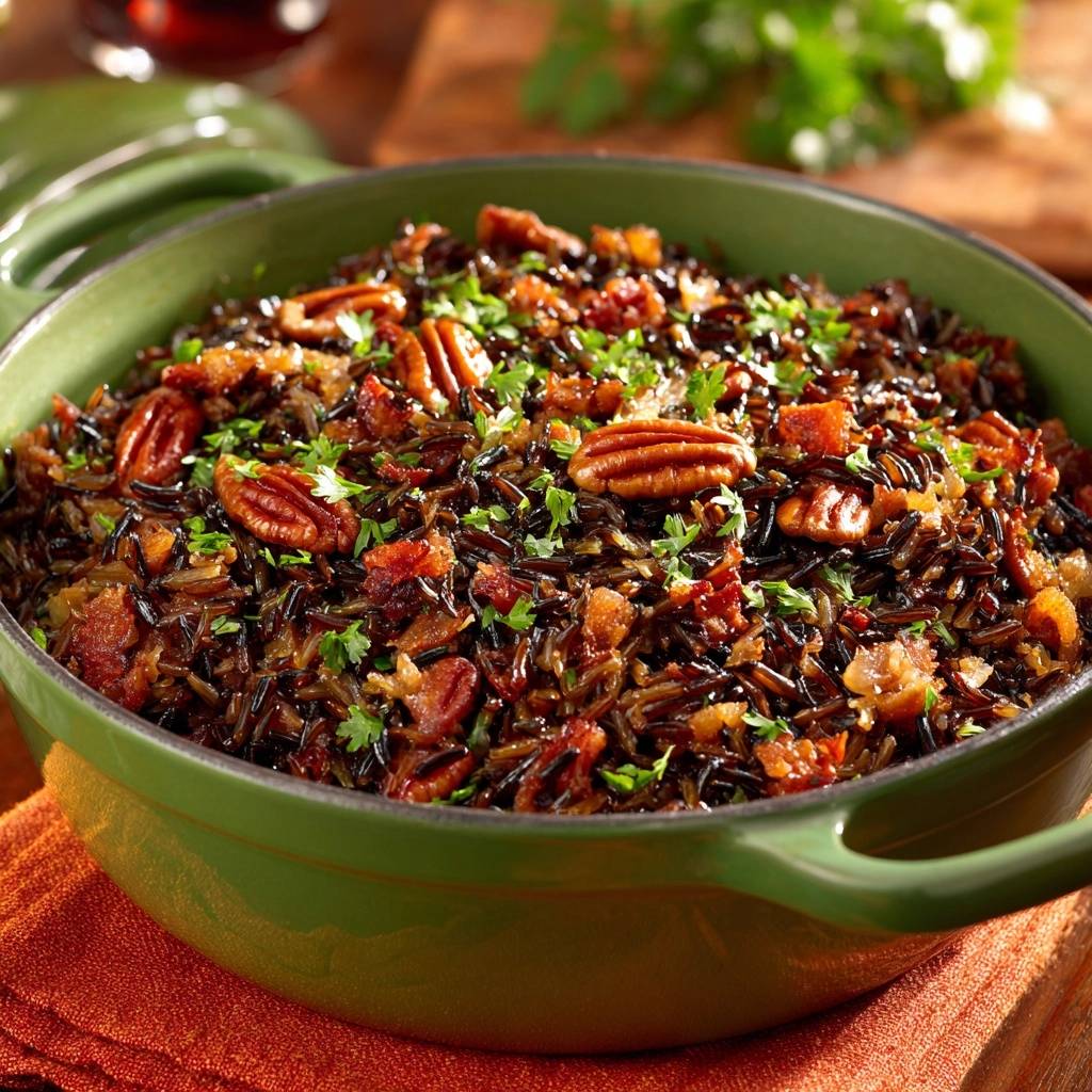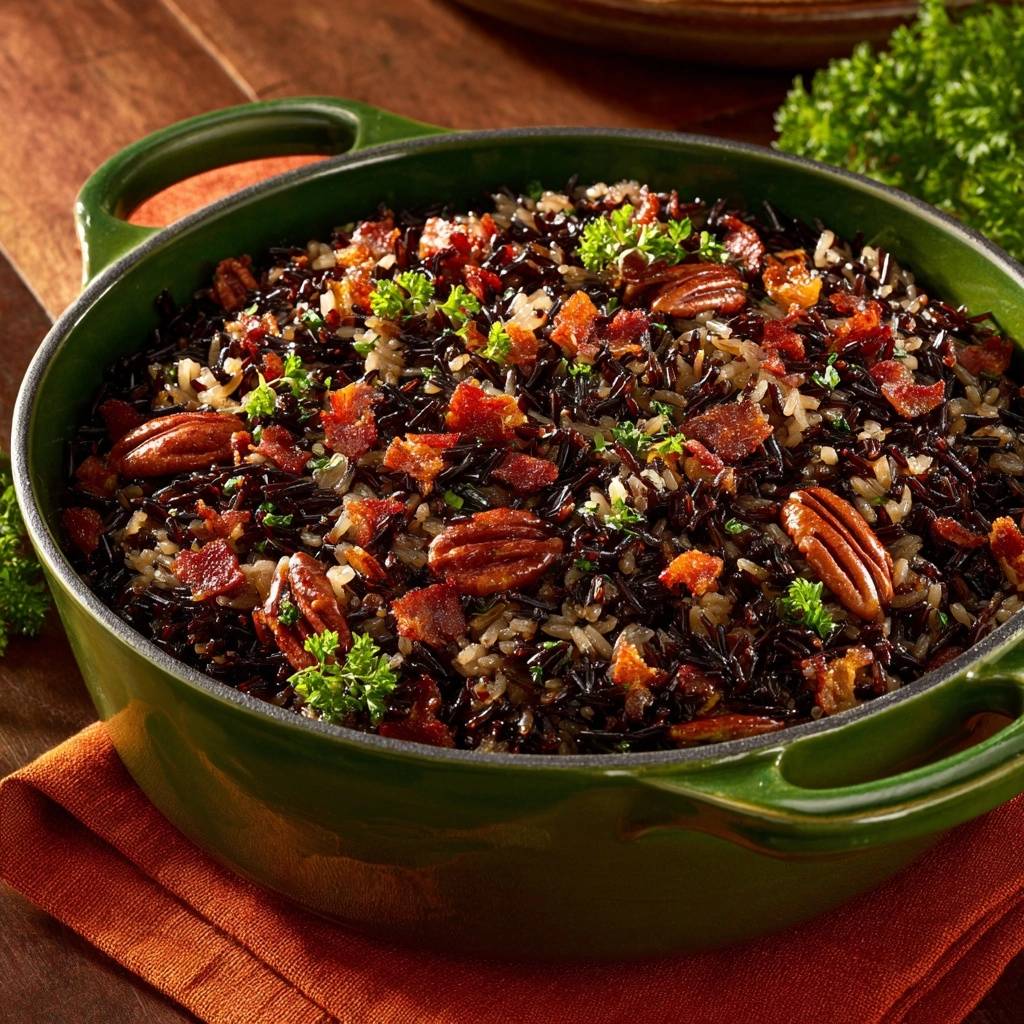 Dieser Topf vereint Texturen, die süchtig machen. Der Wildreis bringt eine erdige Tiefe mit, während der kross gebratene Rinder-Bacon für eine herzhafte Salzigkeit sorgt, die wunderbar mit der natürlichen Süße der Pekannüsse harmoniert.