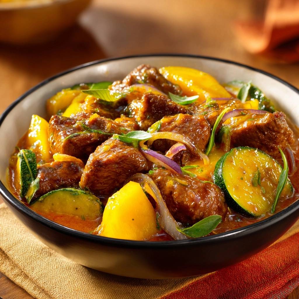 Herzhaftes Rindergulasch mit Zucchini und Kartoffeln