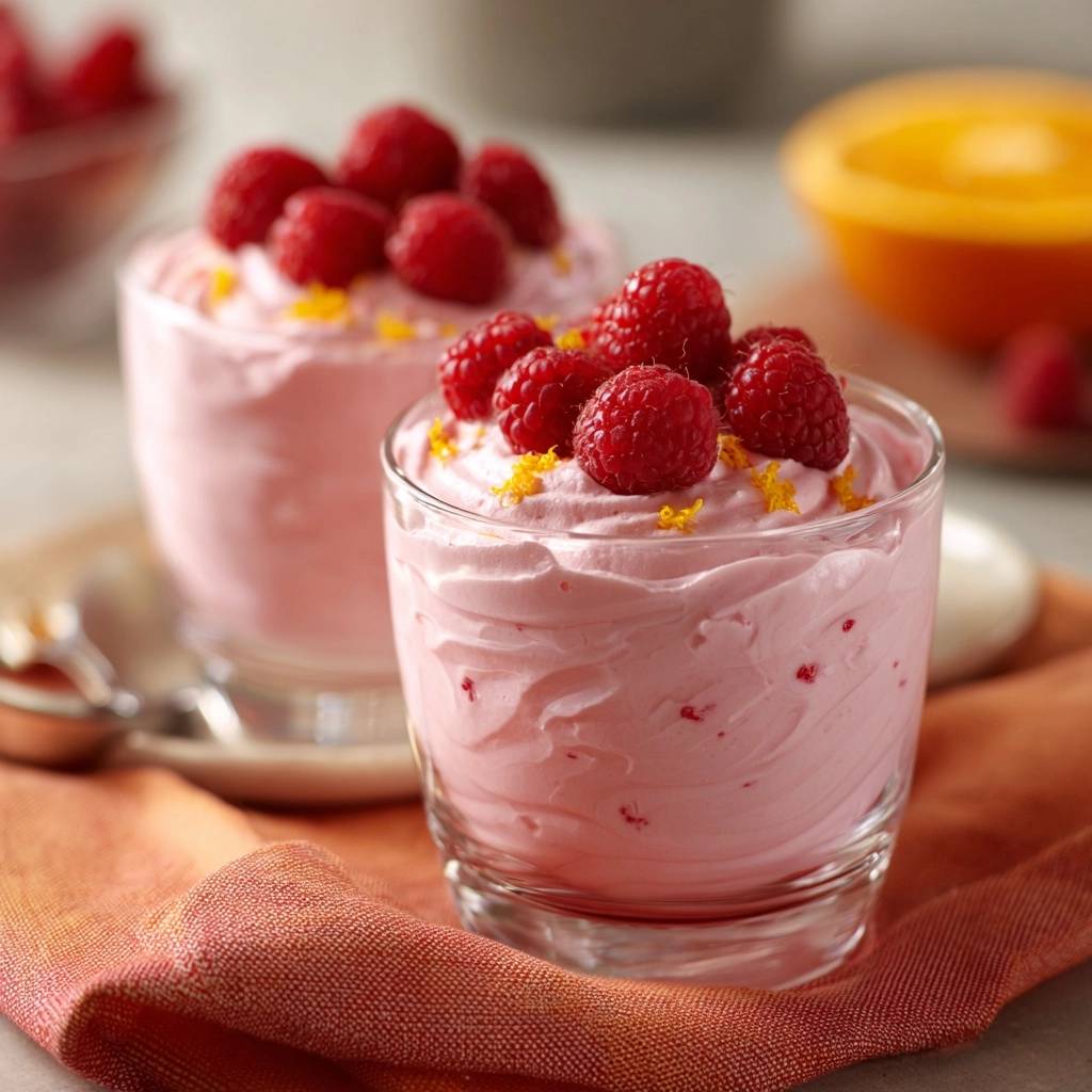 Frische Himbeeren halbieren für Saftigkeit. Orangenzeste in feinen Streifen. Etwas Puderzucker drüberstäuben. Oder Minzblätter für Farbe. Serviere in transparenten Gläsern, Schichten sichtbar machen.