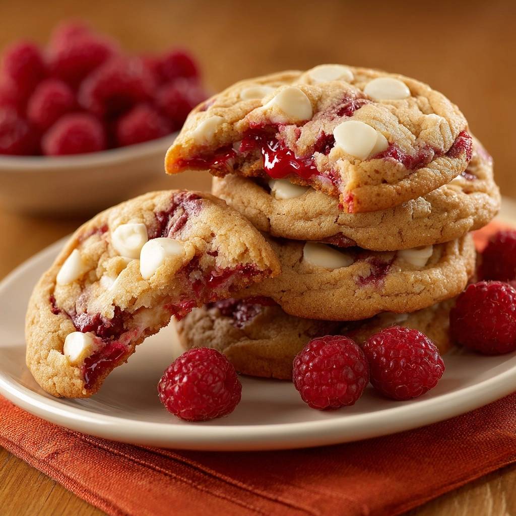 Stell dir vor, du beißt in diesen Cookie. Der Rand knackt weich, dann explodiert der Himbeerkern: süß-säuerlich, gooey, umhüllt von cremiger weißer Schokolade. Kein Chaos auf dem Blech, kein Verbrennen. Nur pure Freude.