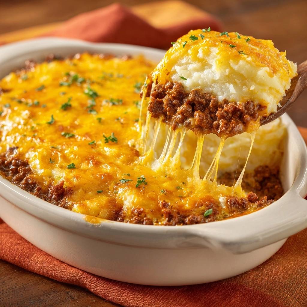 Der erste Bissen in diese Hirtenpastete haut dich um. Saftiges Rinderhack mit würziger Tomatensoße, darüber ein Püree, das luftig schmilzt und eine goldene Käsekruste bildet. Kein Klumpen, kein Abrutschen. Einfach perfekt.