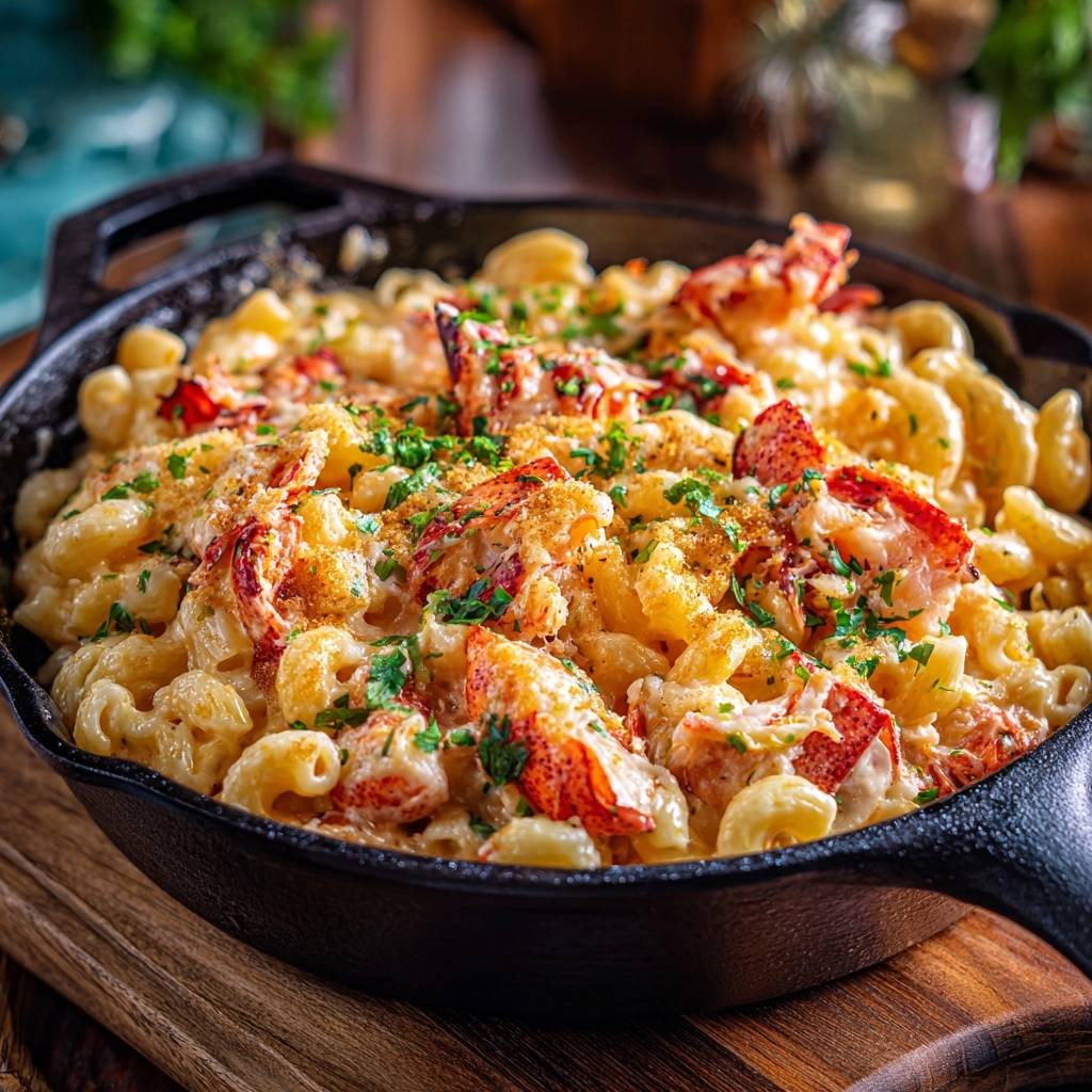 Ersetze Hummer durch Artischockenherzen oder Pilze, gewürzt mit Zitronenschale und Meeresalgen für Umami. Sauce bleibt gleich, für vegan pflanzlichen Käse wählen. Ergebnis: Cremig-knusprig, ohne Meerestiere.