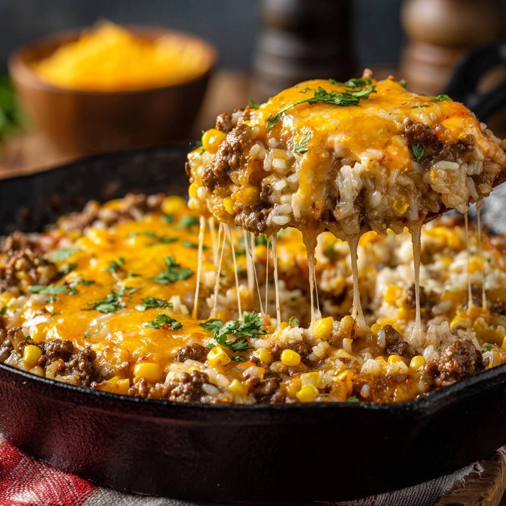 Stell dir vor, du beißt in eine Gabel voll fluffigem Reis, der mit saftigem Rinderhack, süßem Mais und geschmolzenem Käse überzogen ist. Der Duft von geräuchertem Paprika und frischem Knoblauch zieht durch die Küche, und alles ist in einer einzigen Pfanne fertig. Das ist pure Wohlfühlküche, die jeden hungrigen Magen sofort besänftigt.