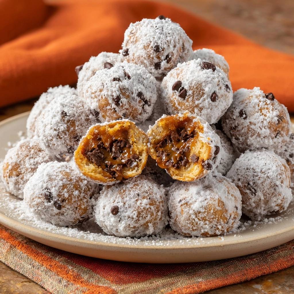 Bällchen dick in Puderzucker wälzen. Auf Teller, 30 Min. kühlen. Jetzt beißen: Karamell fließt, Teig hält. Perfekt!