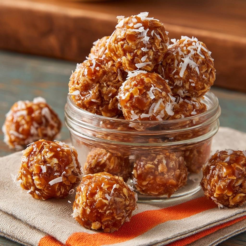 Stell dir vor, du beißt in ein Karamell-Kokos-Hafer-Bällchen, und es zerfällt nicht. Der Karamellgeschmack explodiert weich und klebrig, umhüllt die knackigen Haferflocken, während Kokosraspel knusprig nachhallen. Der Duft von goldbraunem Honig und Kokosöl zieht durch die Küche, süß und tropisch.