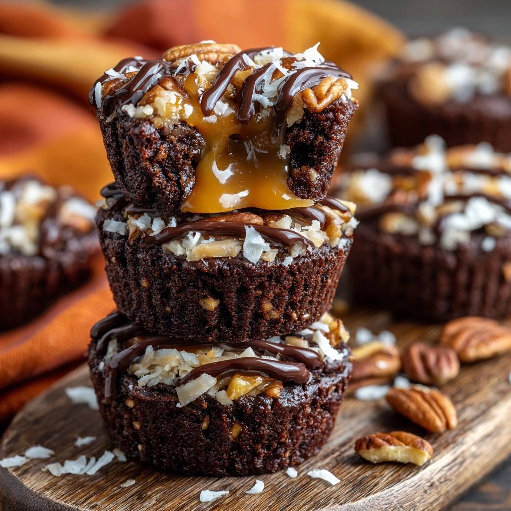 Der erste Biss in diese Bites ist pure Glückseligkeit. Das Karamell fließt saftig heraus, während das knusprige Kokos-Pekan-Topping knackt und die Schokolade schmilzt. Du spürst die cremige Füllung, die genau richtig ist, nicht zu fest, nicht zu flüssig.
