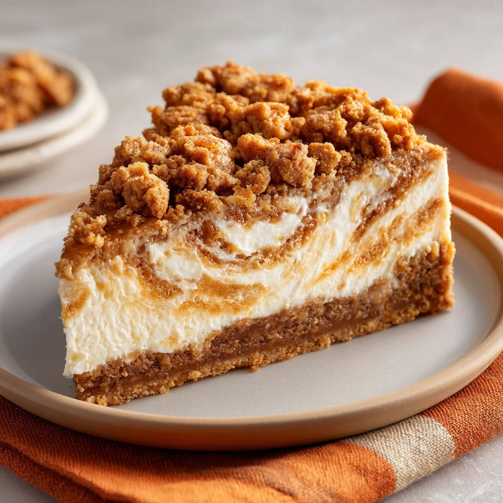 Karamell-Swirl Käsekuchen mit Knusper-Topping