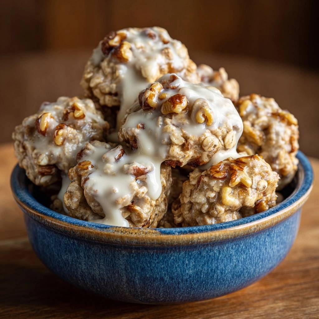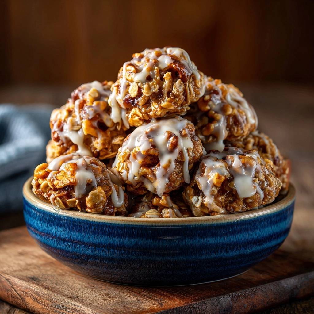 Stell dir vor, du nimmst das erste karamellisierte Hafer-Nuss-Bällchen in die Hand. Es hält perfekt, knackt außen knusprig und gibt innen saftig nach. Der Duft von gerösteten Pekannüssen mischt sich mit cremigem Vanille-Guss, und der Karamell-Kick explodiert im Mund. Purer Genuss, der kleben bleibt.