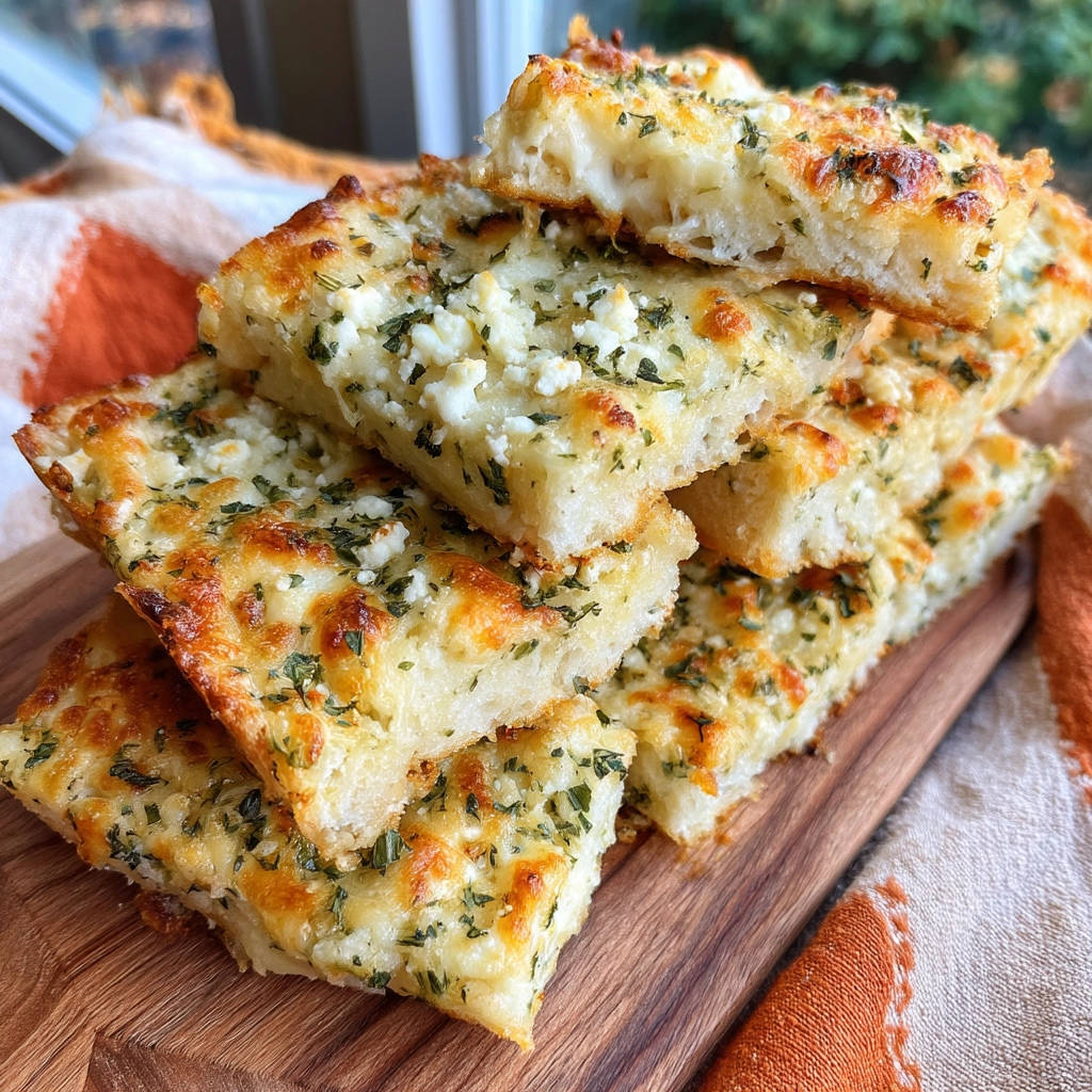 - Aroma auftragen und belegen: Pinsle die vorbereitete Knoblauch-Butter-Mischung gleichmäßig über die Oberfläche des Teiges auf dem Blech. Achte darauf, den gesamten Teig gut zu bedecken. Verteile dann den zerbröselten Feta und den geriebenen Käse großzügig darüber. Streue zum Schluss die restliche gehackte frische Petersilie über den Käse.
